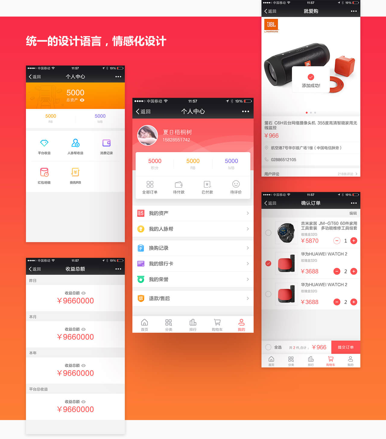 品牌设计在充分理解客户的项目背景的基础上,我们为客户进行了产品和公司的品牌基础VI设计。“就爱购”作为公司多个产品线中的一款互联网产品,我们采用红色主色与橙色的辅助色的色彩搭配,既渲染出浓烈的电商消费的氛围,又传达出产品能为消费者创造更多价值的寓意;而“玖爱科技”作为一个初创互联网公司的品牌,我们则更加强调其“友好”与“可靠”的品牌定位。 |