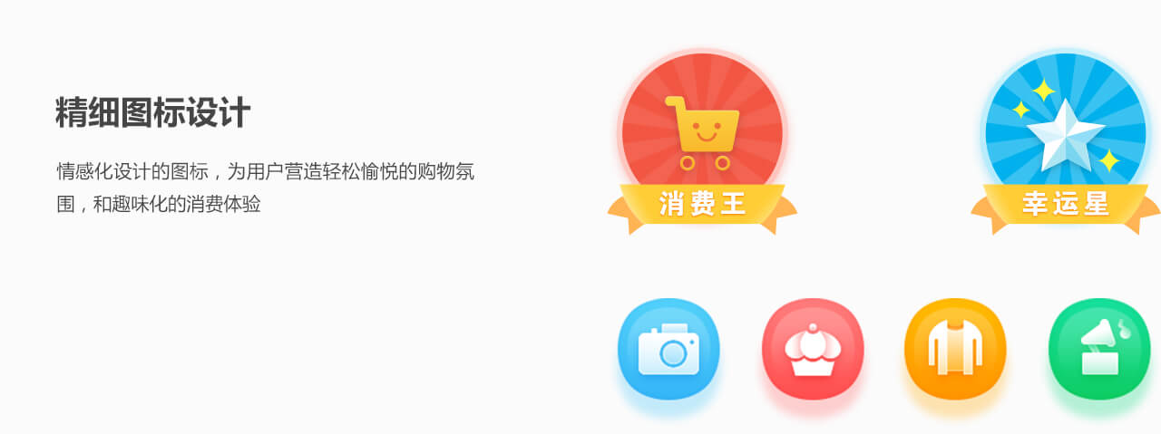 视觉设计在延续品牌DNA的基础上我们采用了扁平化的设计风格,更加注重表层的交互体验背后的有效性与用户体验。我们适当的运用了多彩的色块来区分业务与功能,在保持统一的品牌化视觉风格的同时,为用户营造愉悦的购物氛围。 |