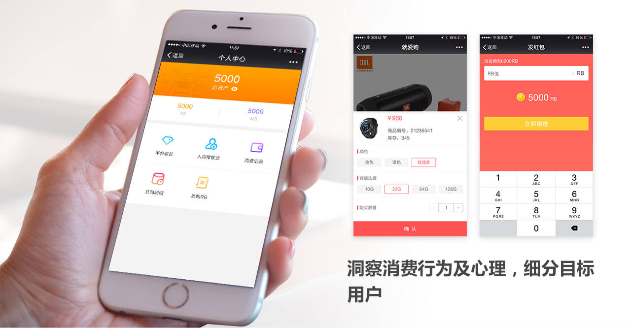 原型设计项目初期,我们与主创项目组进行了深入的讨论,了解了返利行业的所暴露的行业痛点,以及打算如何去解决这些痛点的预设方案,逐一进行了头脑风暴。随后我们对提炼的用户需求进行优先级排序,构建了产品的交互逻辑和框架,并相互打通串联起来。我们从用户使用场景入手,针对移动端和商家端进行了定制化设计,比如强化了用户到店付费的使用体验,加强了移动端的购物以及返利数据展示查询体验等,使不同平台更符合用户的真实需求。 |