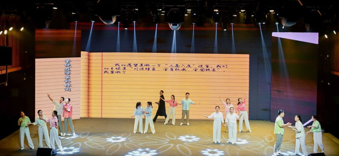 整体舞台展现法治文化的庄严与崇高,又增添了一抹文学的韵味。独特的设计手法不仅提升了舞台的视觉冲击力,更让每一位观众在欣赏表演的同时,感受到传统文化与地域文化的魅力,从而增强了文化认同感和归属感。