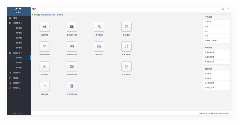 追溯只是企业精细管理最基础的工作之一,食政通从最基础的台账同步记录到最先的MES追溯系统, 开发了数个不同版本基于同一底层的多模块的自由组合,能够在满足国家监管标准的基础上,最大层度满足不同规模,不同层次企业的需求。