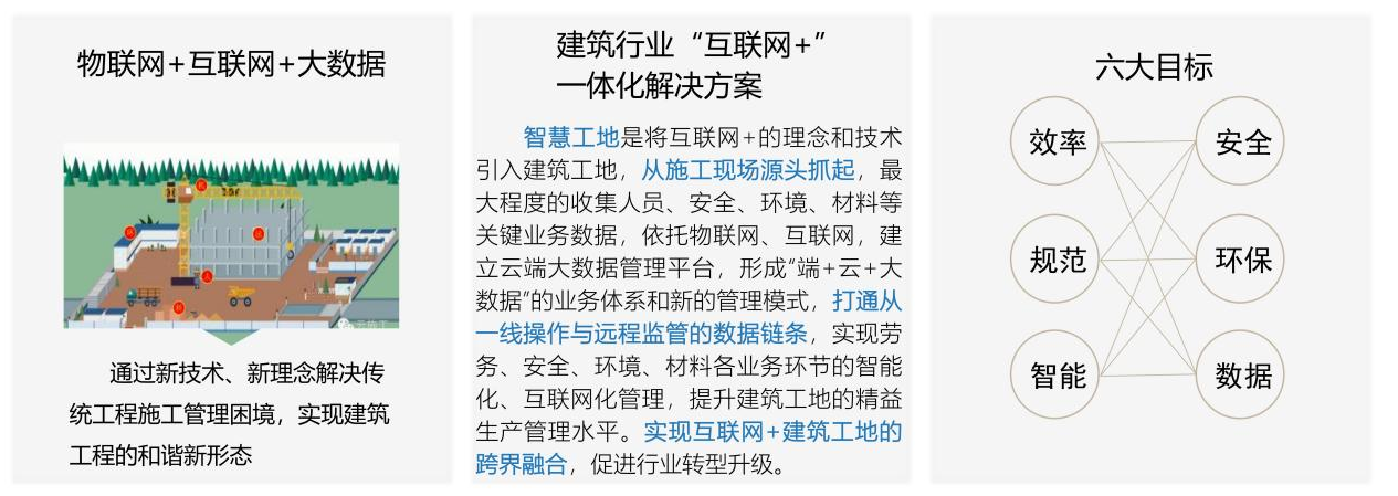 智慧工地解决方案同时兼顾施工方与监管单位的双向诉求,是解决当前工地管理难题的最佳方案,也是建筑行业“互联网+”应用典范。