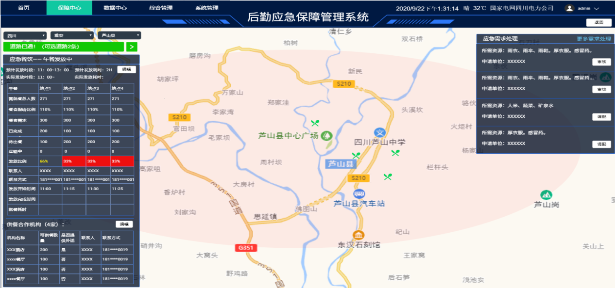 对现场人员、现场物资、应急基站进行管理,生成应急评估报告。