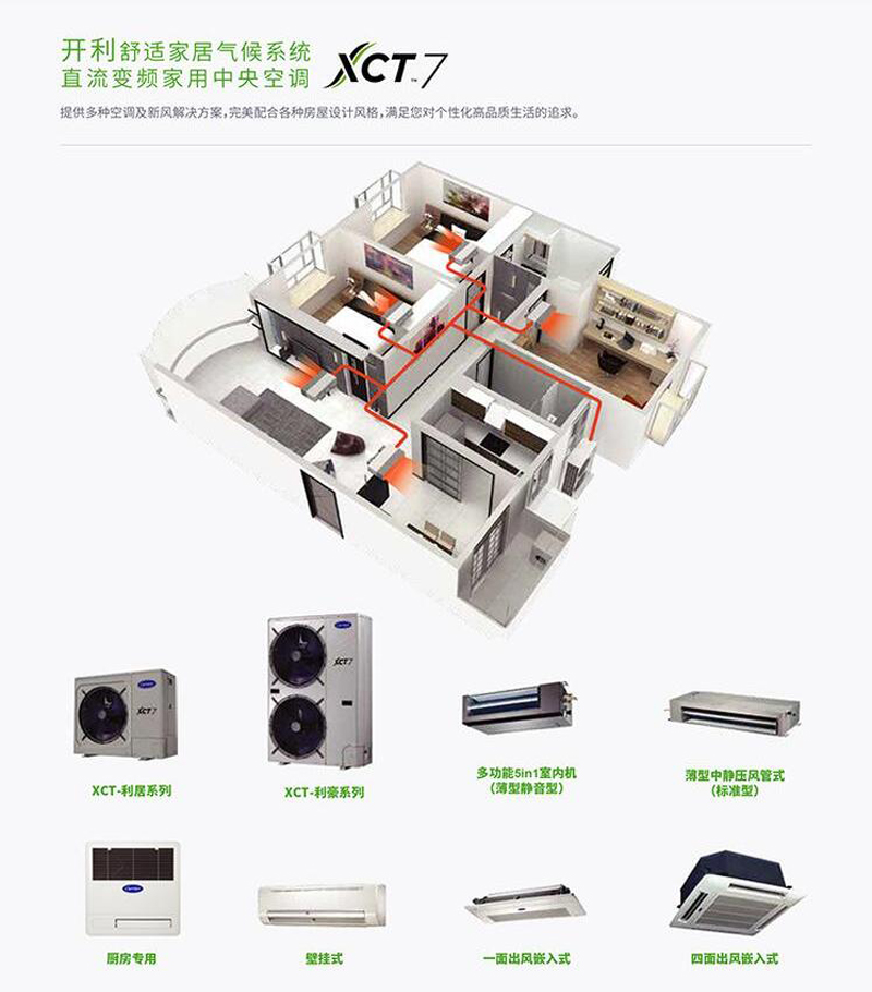 虽然空调品牌多,但是你不用纠结什么牌子的空调好!开利空调是很多用户都在推荐的品牌。开利空调到底好在哪里?我带大家了解一下。开利空调采用舒适家居气候系统,XCT7更是一套直流变频家用中央空调系统。开利空调有自己的专业设计团队,可以根据你的装修风格和房间布局设计最适合你的方案。