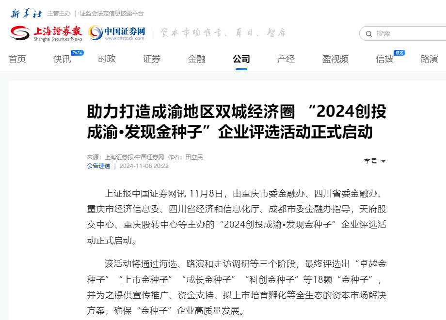 助力打造成渝地区双城经济圈!“2024创投成渝·发现金种子”企业评选活动11月8日开启!